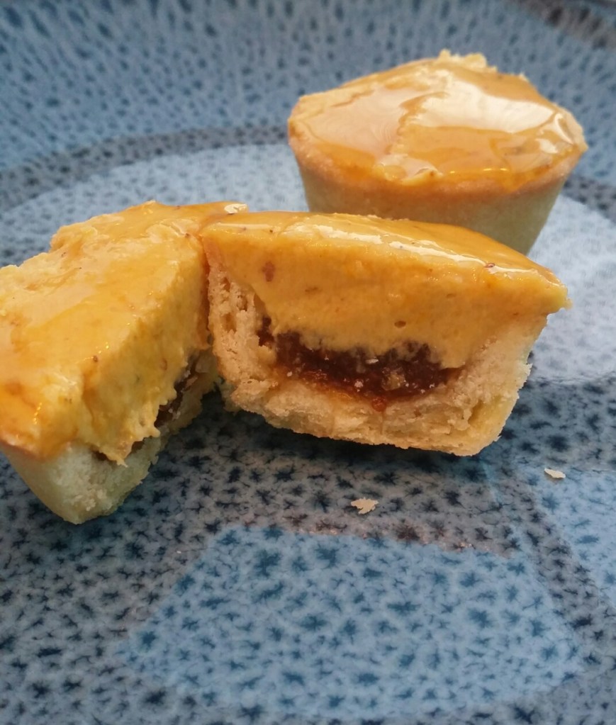 I filled some buttery shortcrust tartlet cases with a little fig fruit spread and Connate, my quince crème. Then I drizzled honey over, followed by a sprinkling of powder douce (ground cinnamon, ginger, nutmeg and Indian bay). Yum!