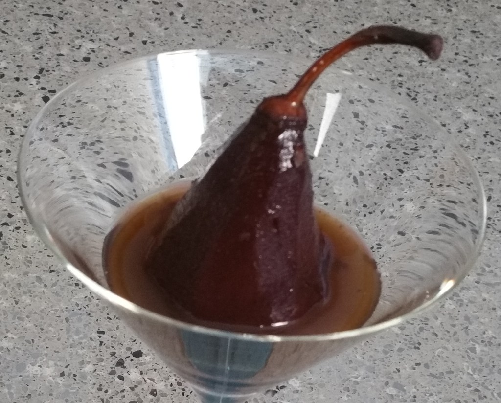 Take pears and peel them clean; take good red wine and mulberries, or sanders [a red food colourant], and simmer the pears in this; and when they are cooked, remove them; make a syrup from Greek wine or Vernaccia along with blanch powder – or white sugar and ginger powder – and add the pears to this; simmer a little and serve it forth. (My own translation.)