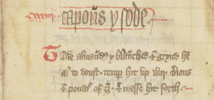 What I will leave you with are the original recipes for the two sauces I wanted to recreate for you. These are from the English medieval collection known as Fourme of Cury, compiled for King Richard II (r. 1377-1399) by his master cooks.