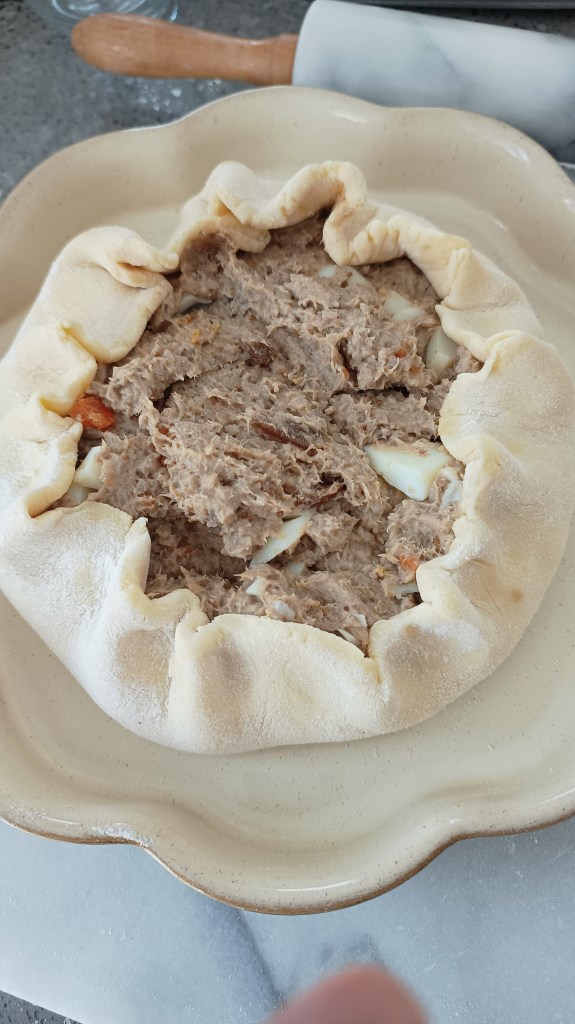 I’m still trying to perfect my gluten-free whole egg pastry; it was a little too thick in places, and so a bit tough. Nevertheless, I still think my final pie looks pretty good – don’t you? – and though not long, as in the original recipe, it still approximates quite well the intended look.