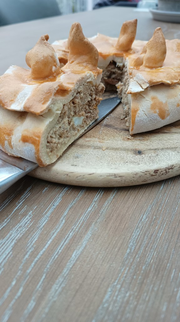 I attempted to make a flampen, perhaps a forerunner to the modern British pork pie, last Friday, using the closest thing to a young cheese I could find: Hebden Cow (York Soft).