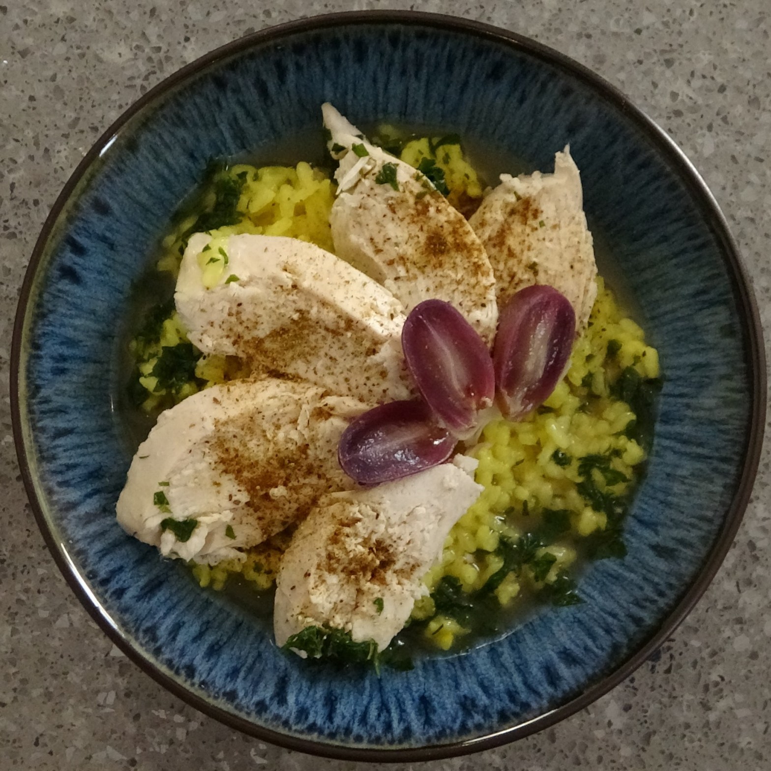 Delicately spiced, this warming dish of poached chicken and saffron rice is guaranteed to brighten any autumnal gloom!